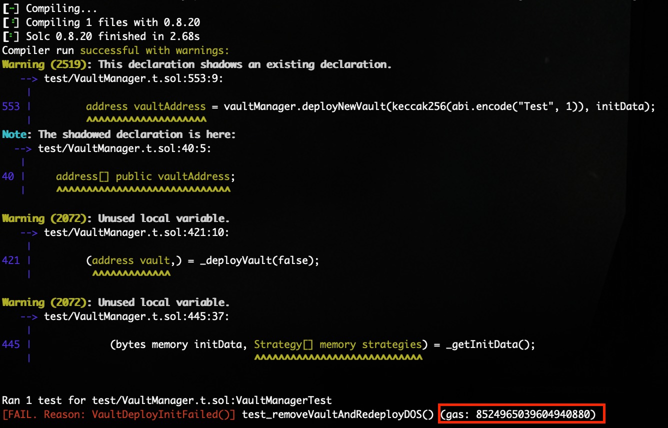Potential Denial of Service on removeVault with block gas limit | Low | Solved - 06/09/2024 |
