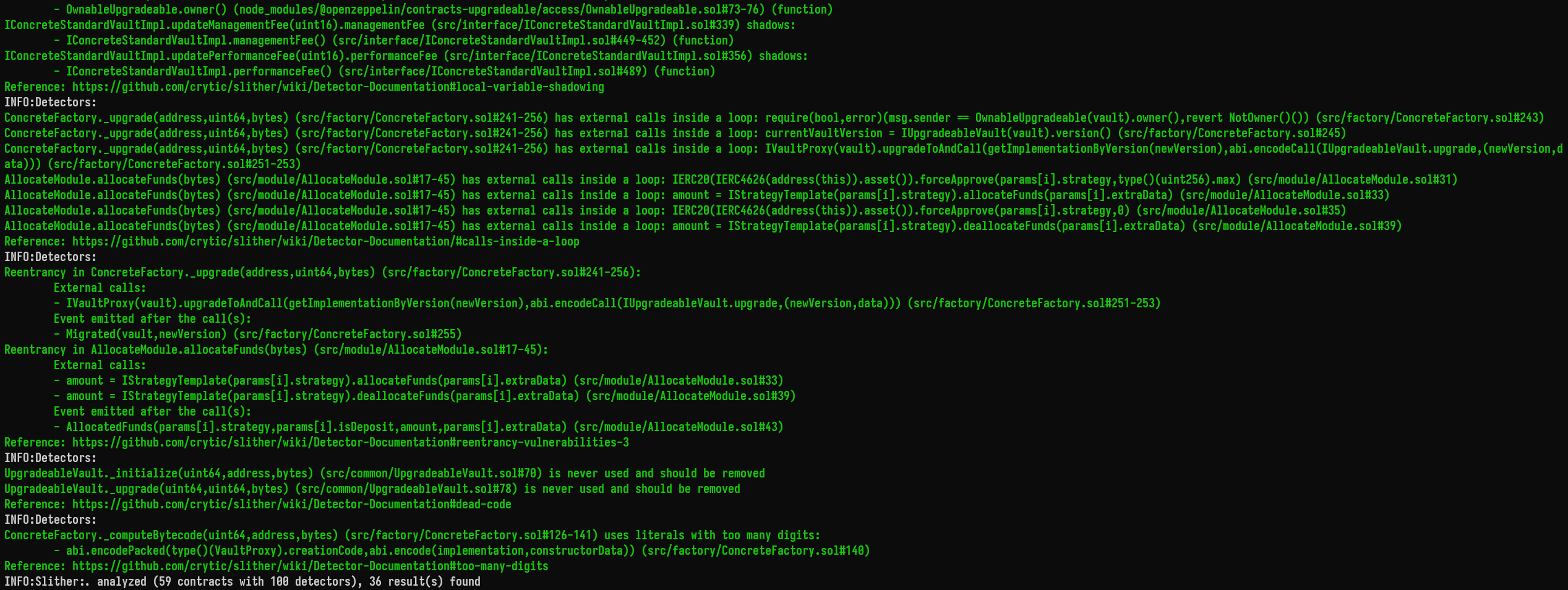 Most findings identified by Slither