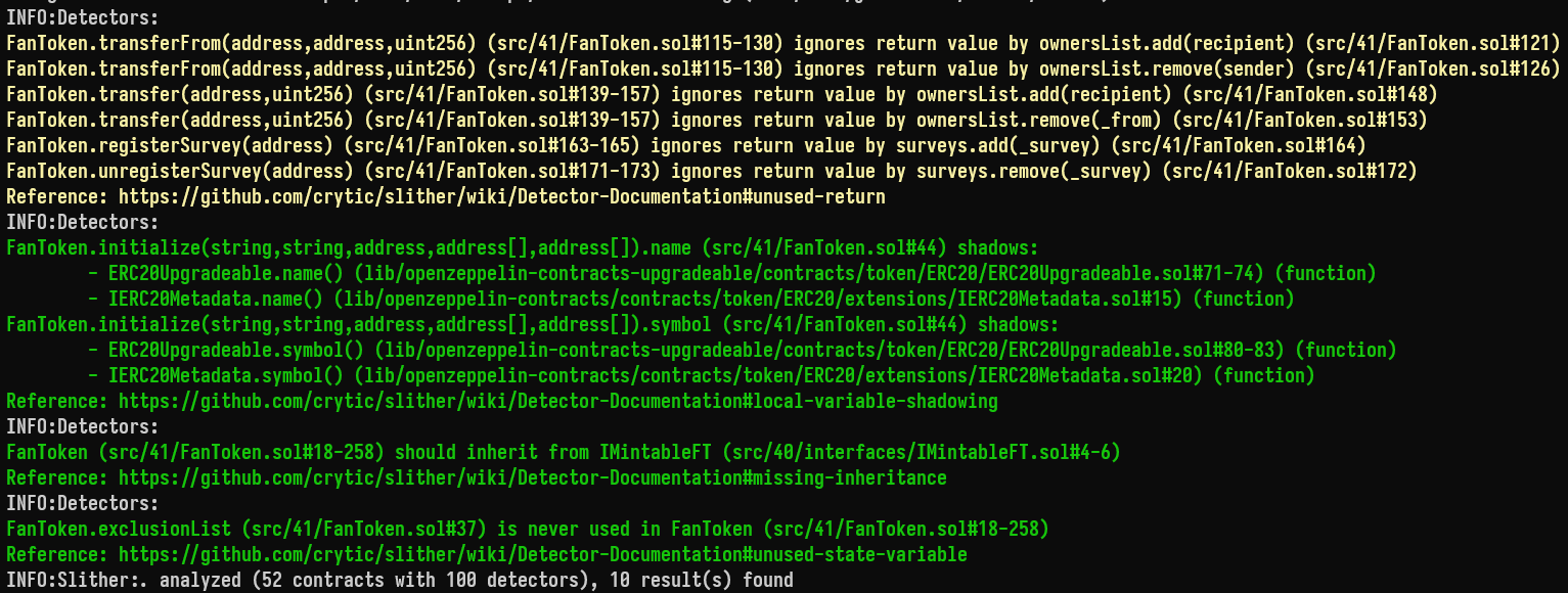 The security team assessed all findings identified by the Slither software, however, findings with related to external dependencies are not included in the below results for the sake of report readability.