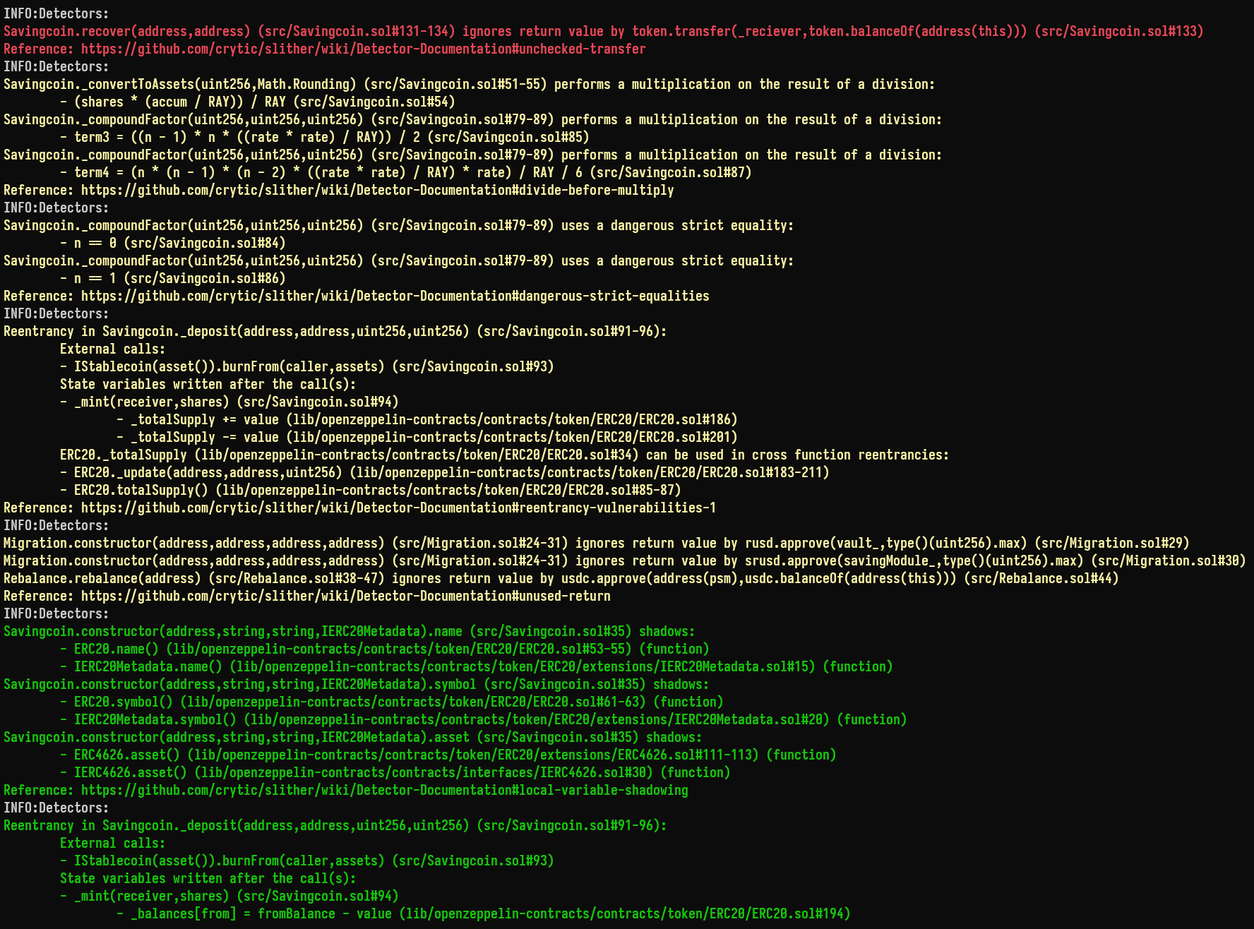 The security team assessed all findings identified by the Slither software, however, findings with related to external dependencies are not included in the below results for the sake of report readability.